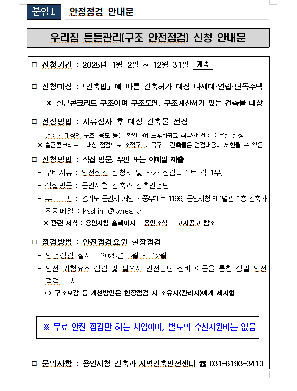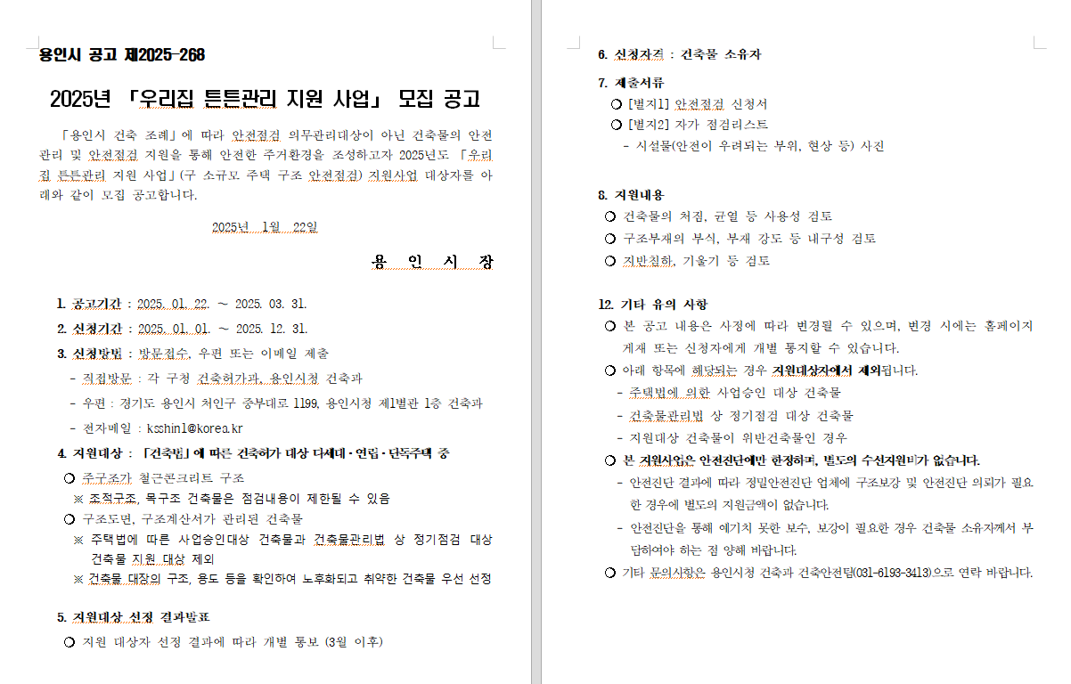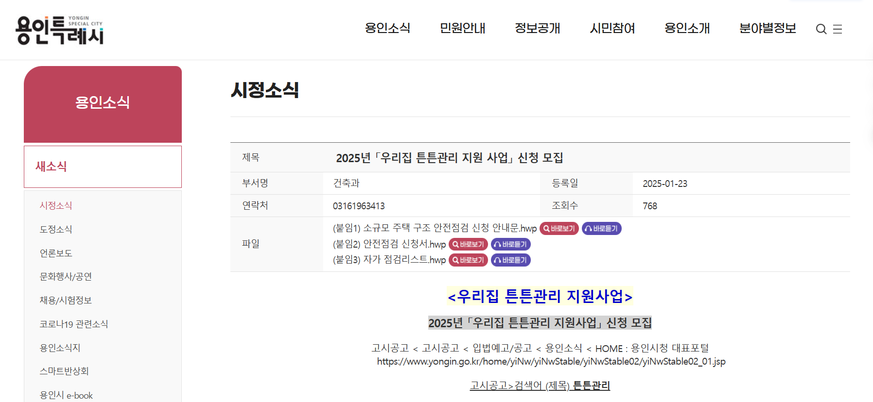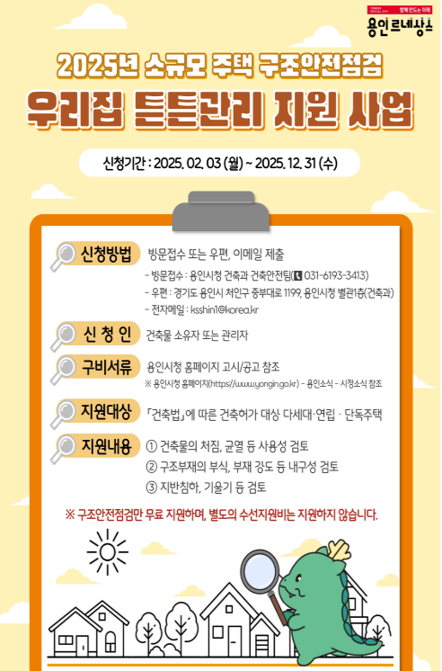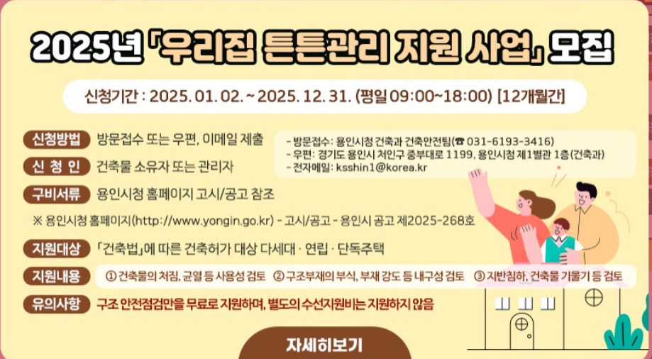 2025년 용인시 '우리집 튼튼관리 지원 사업' 안내|지원 대상, 신청 방법 총정리!