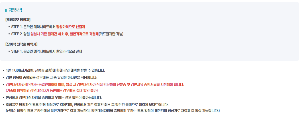 - 현장 결제 불가: 모든 예약은 온라인 결제로 사전 완료해야 입장 가능