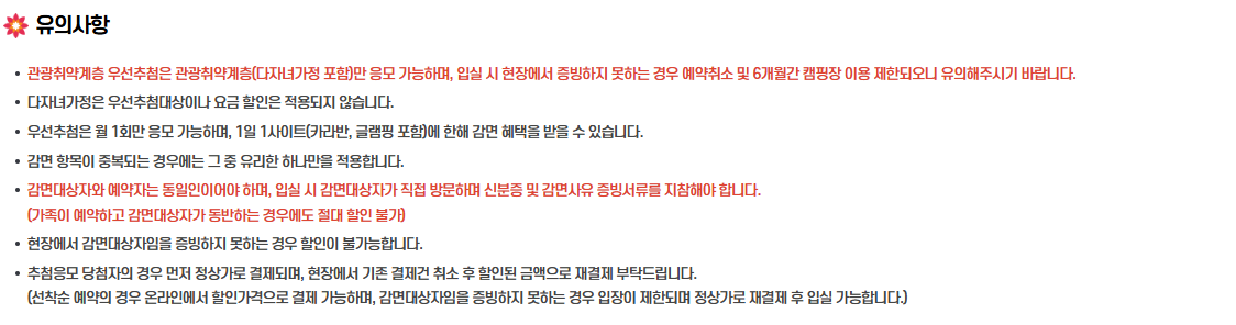 - 비수기 평일 캠핑 고려: 예약이 수월하고 조용하게 즐길 수 있음