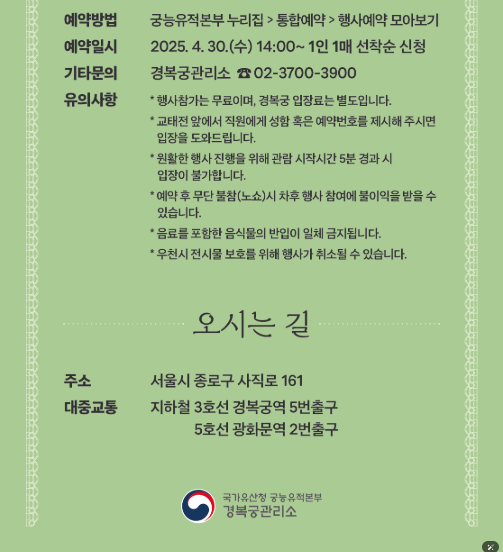 | 문의처 | 경복궁관리소 (02-3700-3900) |